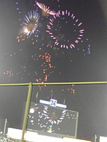 花火300発は横浜の勝利のために! 神宮から帰ってきたぞーわーいわーい! しょっちゅう神宮で一日2本打つ村田に続いて、今日は後輩吉村がタイムリー2ベースに2HRで5打点の大活躍ばんざーいばんざーい!! 4月に神宮で大勝して村田が2HRした日の半券を縁起を…